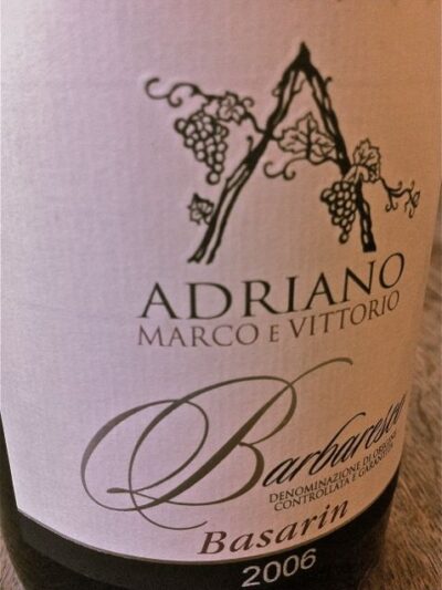 De Basarin is de meer krachtige, complexe Barbaresco van Adriano. De kleur is al wat dieper, de geur heeft al complexiteit en een beetje grond (ijzer). De smaak is robuust en stevig, maar toch zacht à la een Bourgogne (Pommard). Wie geduld heeft om hem nog even te laten rijpen zal worden beloond, maar voor wie niet kan wachten is decanteren een prima optie. Genomineerd voor Tre Bicchieri 2010: Top Barbaresco, voor een zeer schappelijke prijs.